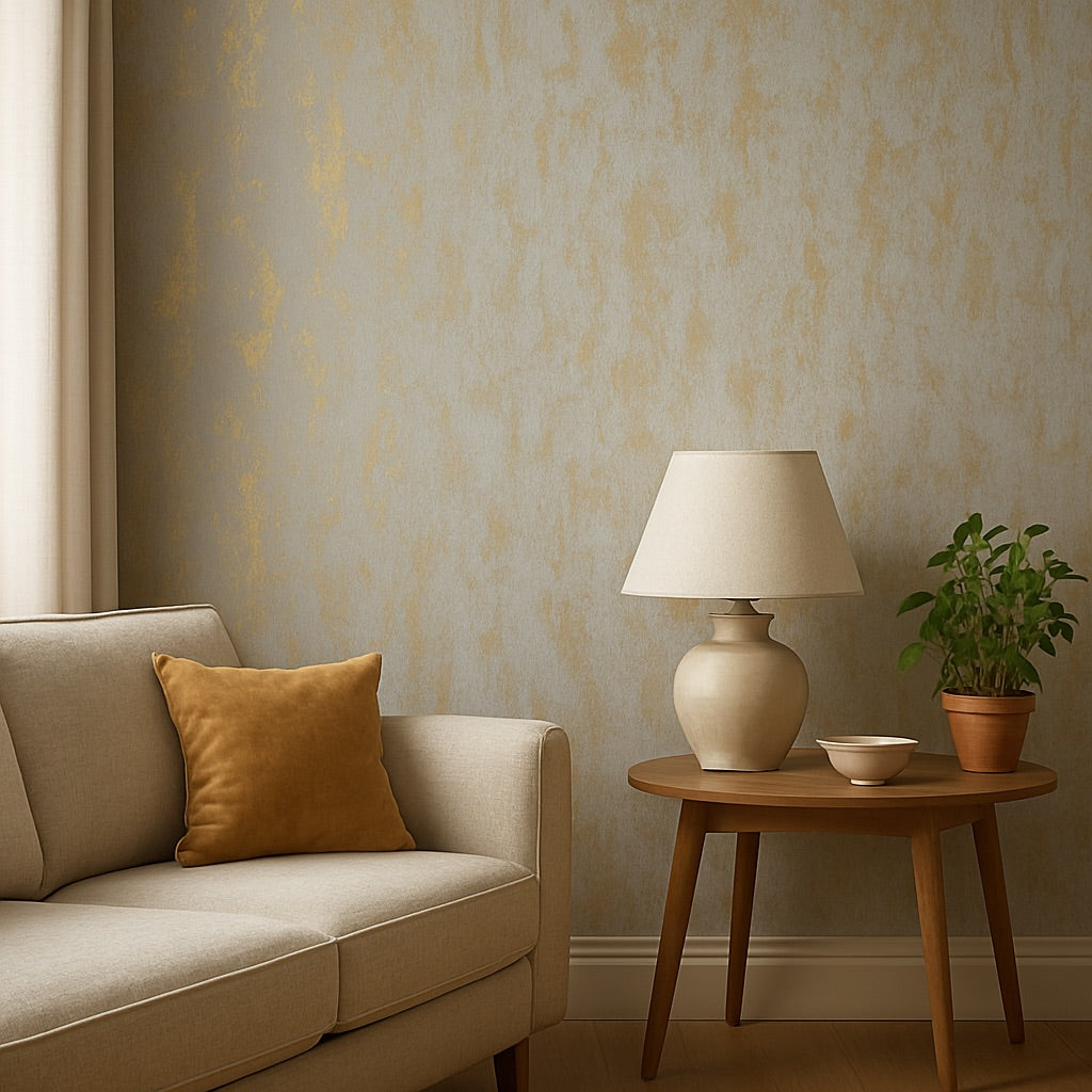 This design features a subtle concrete-inspired texture with an industrial edge. Each colourway combines a matte printed backdrop with metallic highlights for a refined shimmer that’s elegant, not overpowering. Ideal for decorating all walls, this wallpaper looks beautiful in well-ventilated spaces such as living rooms, hallways, staircases, or bedrooms.